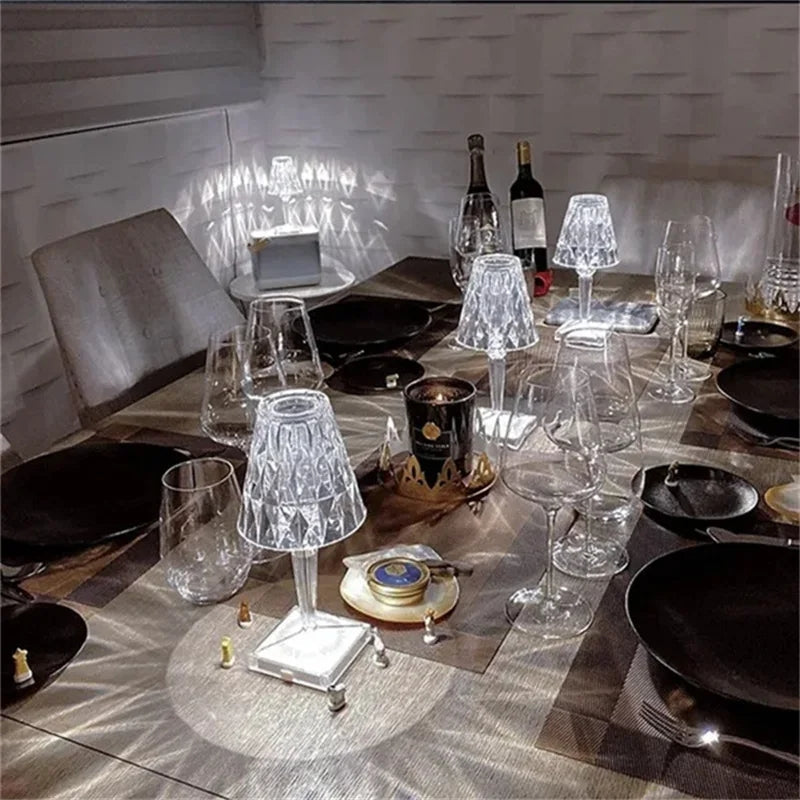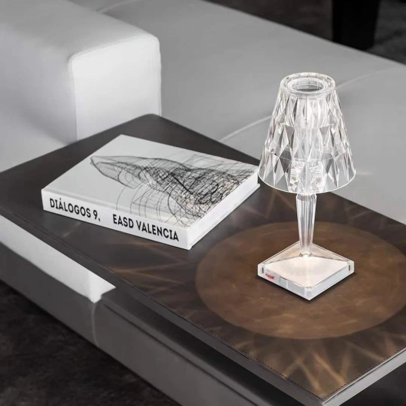 Illuminate your space with the ACRYLIC DIAMOND TABLE LAMP. Made of high-quality acrylic, it adds a touch of elegance to any room. With its sleek design and durable material, this lamp is perfect for both modern and traditional styles. Perfect for creating ambient lighting and enhancing the decor of your home.
